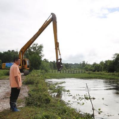 นายก อบจ.สงขลา ติดตามกองช่างอบจ.สงขลา ขุดลอกคลองกำจัดวัชพืช เพื่อป้องกันน้ำท่วม