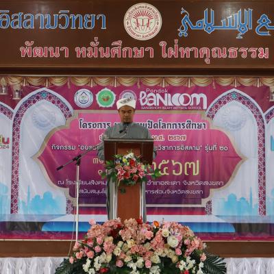 นายไพเจน มากสุวรรณ์ นายกองค์การบริหารส่วนจังหวัดสงขลา มอบ นายอับดลรอหมาน กาเหย็ม รองนายกองค์การบริหารส่วนจังหวัดสงขลา เป็นประธานในพิธีเปิดโครงการมหกรรมวิชาการเปิดโลกการศึกษาประจำปี 2567 รุ่นที่ 20 โดยมี นายสุรศักดิ์ อะหวัง นายกสมาคมโรงเรียนเอกชนสอนศาสนาอิสลามจังหวัดสงขลาคณะกรรมการจัดโครงการฯ ข้าราชการครู นักเรียนโรงเรียนสังคมอิสลาม ข้าราชการเจ้าหน้าที่กองการศึกษา ศาสนาและวัฒนธรรม องค์การบริหารส่วนจังหวัดสงขลา นักเรียนโรงเรียนเอกชนสอนศาสนาอิสลามเข้าร่วมกิจกรรม โดยมีวัตถุประสงค์ เพื่อจัดการอบรมทักษะวิชาการ การแข่งขันทักษะทางวิชาการและการจัดนิทรรศการผลงานทางวิชาการ เพื่อต้องการส่งเสริมสนับสนุนและพัฒนาทักษะทางด้านวิชาการให้กับนักเรียนในสมาคมซึ่งเป็นกำลังสำคัญในการพัฒนาเยาวชนและการศึกษาของประเทศต่อไป