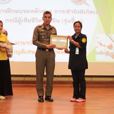 วันศุกร์ที่ 9 พฤศจิกายน 2561 องค์การบริหารส่วนจังหวัดสงขลา ร่วมกับ ศูนย์พิสูจน์หลักฐาน 9 สงขลา จัดทำโครงการฝึกอบรมการเข้าถึงที่เกิดเหตุกรณีผู้เสียชีวิตฉุกเฉินขึ้น ระหว่างวันที่ 5-9 พฤศจิกายน 61 ได้รับเกียรติจากนายจรัส ชุมปาน ผู้เชี่ยวชาญพิเศษด้านการพัฒนาสังคม องค์การบริหารส่วนจังหวัดสงขลา เป็นประธานกล่าวปิดโครงการฝึกอบรมหลักสูตร การเข้าถึงที่เกิดเหตุกรณีผู้เสียชีวิตฉุกเฉิน ณ ห้องประชุมศรีเกียรติพัฒน์ องค์การบริหารส่วนจังหวัดสงขลา และในครั้งนี้มีการมอบประกาศนียบัตรแก่ผู้ผ่านการฝึกอบรมหลักสูตร ได้รับเกียรติจาก พ.ต.อ. สิทธิภูมิ เธียนชัยวัฒนา รองผู้บังคับการศูนย์พิสูจน์หลักฐานฯ 9 สงขลา ให้เกียรติเป็นผู้มอบฯ แก่ผู้ผ่านการฝึกอบรม