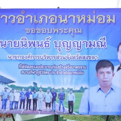 10 พฤศจิกายน 2561 นายนิพนธ์ บุญญามณี นายกองค์การบริหารส่วนจังหวัดสงขลา ประธานในพิธีส่งมอบลู่วิ่งยางสังเคราะห์ สนามกีฬาภูริวิจิตร ประจำอำเภอนาหม่อม ในโครงการเดิน - วิ่งเพื่อสุขภาพ พร้อมด้วยนายอาคม ผสมพงษ์ สมาชิกสภา อบจ.สงขลา นายปัญญา จินดาพล นายอำเภอนาหม่อม นายกอบต.ในพื้นที่ หัวหน้าส่วนราชการในอำเภอนาหม่อมและนักวิ่งที่เข้าร่วมแข่งขันกีฬาเดิน - วิ่งเพื่อสุขภาพ ร่วมในพิธีเปิดการแข่งขันและพิธีส่งมอบลู่วิ่งยางสังเตราะห์ สนามกีฬาภูริวิจิตร ประจำอำเภอนาหม่อม และร่วมมอบรางวัลให้แก่ผู้ชนะการแข่งขัน เดิน-วิ่ง เพื่อสุขภาพ ประเภทชายและหญิงที่เข้าลำดับ 1และลำดับที่ 3 ซึ่งทางองค์การบริหารส่วนจังหวัดสงขลา ได้สนับสนุนงบประมาณในการก่อสร้างสนามกีฬาใหม่ พร้อมกับลู่วิ่งยางสังเคราะห์ที่ได้มาตราฐาน โดยเป็นสนามกีฬาแห่งที่ 5 ต่อจากสนามกีฬาอำเภอระโนด ทั้งนี้เพื่อเป็นการยกระดับมาตราของสนามกีฬาประจำอำเภอในจังหวัดสงขลา ตามนโยบายขององค์การบริหารส่วนจังหวัดสงขลา ที่จะพัฒนาให้สงขลาเป็นเมืองแห่งกีฬา และเพื่อสนับสนุนให้เยาวชนและประชาชนทั่วไปหันมาออกกำลังกาย ซึ่งจะเป็นส่วนหนึ่งในการแก้ไขปัญหาในเรื่องของยาเสพติด ของเยาวชน และประชาชนในพื้นที่โดยใช้กีฬาเป็นสื่อ