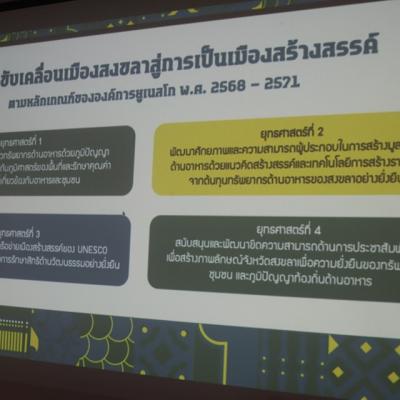 ยุทธศาสตร์ที่ 2พัฒนาศักยภาพและความสามารถผู้ประกอบในการสร้างมูลค่าเพิ่มด้านอาหารด้วยแนวคิดสร้างสรรค์และเทคโนโลยีการสร้างรายได้จากต้นทุนทรัพยากรด้านอาหารของสงขลาอย่างยั่งยืน