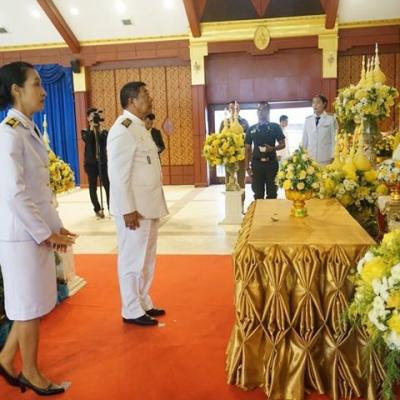 รองนายก อบจ.สงขลา ร่วมพิธีวางพานพุ่มดอกไม้สดถวายสักการะ เพื่อร่วมน้อมสำนึกในพระมหากรุณาธิคุณของ พระบาทสมเด็จพระปรมินทรมหาภูมิพลอดุลยเดช บรมนาถบพิตร เนื่องในวันพระบิดาแห่งฝนหลวง