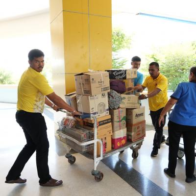 นายจรัส ชุมปาน ผู้เชี่ยวชาญพิเศษด้านการพัฒนาสังคม อบจ.สงขลา พร้อมด้วยหัวหน้าส่วนราชการ ร่วมรับมอบของบริจาคช่วยเหลือผู้ประสบอุทกภัยทางภาคเหนือ จากเทศบาลตำบลพะตง อำเภอหาดใหญ่ จังหวัดสงขลา