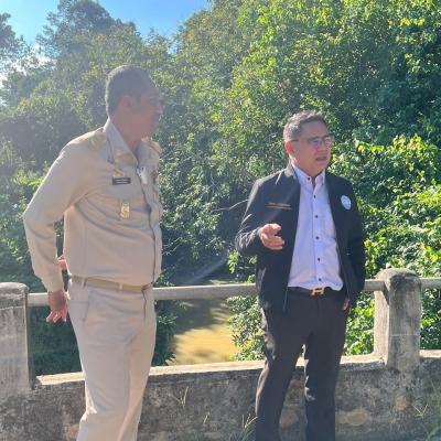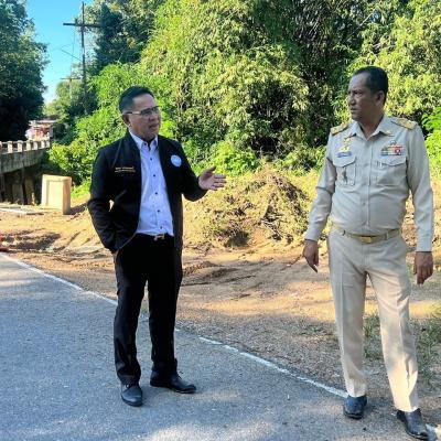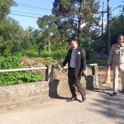 ต่อมาลงพื้นที่บริเวณ หมู่ 3 ต.ทุ่งตำเสา ติดตามความคืบหน้า การก่อสร้างถนนสายบ้านหูแร่ ตำบลทุ่งตำเสา – บ่านท่าแร่ ตำบลฉลุง อ.หาดใหญ่ จ.สงขลา และพื้นที่บริเวณ สะพานถนนเชื่อมต่อระหว่างตำบลฉลุง หมู่ 3 และ ตำบลทุ่งตำเสา หมู่ 3 ซึ่งยังอยู่ระหว่างดำเนินการก่อสร้าง