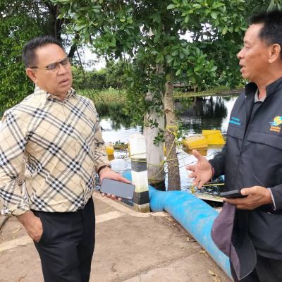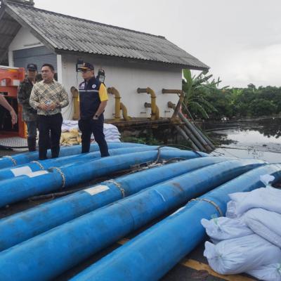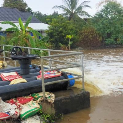 ต่อมานายกไพเจน ลงพื้นที่จุดที่สอง ที่บ้านล้องปู่หมิ่น ตำบลสันทราย อำเภอสารภี จังหวัดเชียงใหม่ เพื่อดูการทำงานของกรมชลประทานที่กำลังเร่งระบายน้ำที่มาจากพื้นที่รับน้ำ เพื่อระบายน้ำลงสู่แม่น้ำกวง ซึ่งบ้านสันทรายจะเป็นพื้นที่รับน้ำของสี่ตำบล และจุดตรงนั้นเป็นสถานีสูบน้ำพลังงานไฟฟ้า เพื่อสูบน้ำข้ามไปยังแม่กวง ตรงนี้จึงถือเป็นพนังกั้นน้ำ หรือเป็นประตูระบายน้ำ เพื่อไม่ให้ลำน้ำแม่กวง โดยเวลามีน้ำมากจะทะลักเข้าชุมชน แต่ถ้าเป็นหน้าแล้งจะกักเก็บน้ำเอาไว้เพื่อรักษาระดับน้ำได้