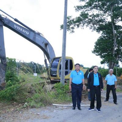 อบจ.สงขลา ตรวจดูความเรียบร้อยในการนำเครื่องจักกลปรับภูมิทัศน์สองข้างทาง บนถนนสายจังโหลน - บ้านหัวควน