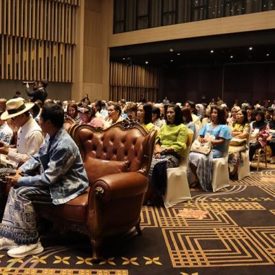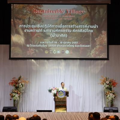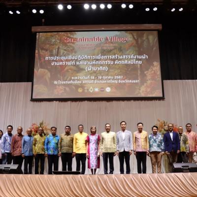 สำหรับการจัดงานในวันนี้ เป็นกิจกรรมการประชุมเชิงปฏิบัติการเพื่อการสร้างสรรค์งานผ้า งานคราฟท์ และงานหัตถกรรม หัตถศิลป์ไทย จุดดำเนินการที่ 2 จังหวัดสงขลา ประเภทผ้าบาติก กลุ่มเป้าหมายประกอบด้วย ผู้ผลิต ผู้ประกอบการโอท๊อป ประเภทกลุ่มผู้ผลิตชุมชน ที่มีผลิตภัณฑ์ประเภทผ้าบาติกจากจังหวัดนราธิวาส 3 กลุ่ม //จังหวัดสตูล 2 กลุ่ม // และจังหวัดสงขลา 3 กลุ่ม รวมจำนวน 15 กลุ่ม 150 คน ดำเนินการระหว่างวันที่ 18-19 ตุลาคม 2567 โดยได้รับเกียรติจากคณะที่ปรึกษาโครงการ“ ผ้าไทยใส่ให้สนุก” ร่วมเป็นวิทยากรให้ความรู้ และส่งเสริมการเรียนรู้ ให้กลุ่มผู้ผลิต ผู้ประกอบการโอท๊อป ที่เข้าร่วมโครงการฯ ให้มีทักษะในด้านการผลิตผลิตภัณฑ์ โดยสามารถผลิตผลิตภัณฑ์ ต้นแบบหรือผลิตภัณฑ์ที่มีอยู่เดิมซ้ำได้อย่างต่อเนื่อง มีคุณภาพ และมีปริมาณเพียงพอต่อความต้องการของตลาดในระดับสากล และได้รับความนิยมเป็นวงกว้าง ส่งผลให้เกิดการสร้างรายได้ให้กับชุมชน
