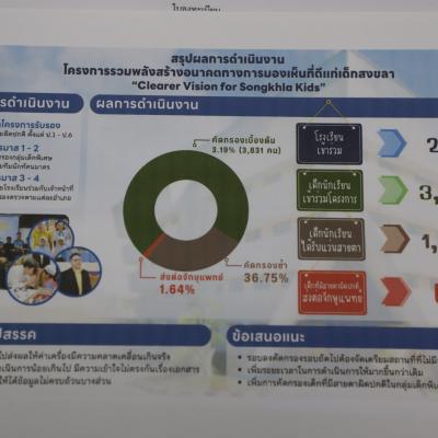 อบจ.สงขลา เดินหน้าขับเคลื่อนโครงการรวมพลังสร้างอนาคตทางการมองเห็นที่ดีแก่เด็กสงขลา "Clearer Vision for Songkhla Kids" มุ่งให้เด็กในจังหวัดสงขลาได้รับการดูแลปัญหาทางสายตาอย่างทั่วถึง