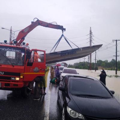 3. สนับสนุนรถบรรทุก 81-8451 บรรทุกเรือท้องแบน ไปช่วยพื้นที่อำเภอจะนะ