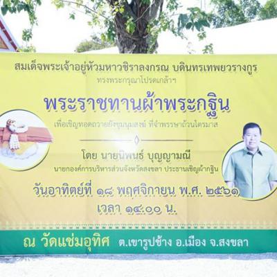 18 พฤศจิกายน 2561 เวลา 14.00 น. ด้วยสมเด็จพระเจ้าอยู่หัวมหาวชิราลงกรณบดินทรเทพยวรางกูร ทรงพระกรุณาโปรดเกล้าฯ พระราชทานผ้าพระกฐิน เพื่อเชิญทอดถวายยังชุมนุมสงฆ์ ณ วัดแช่มอุทิศ ที่จำพรรษาถ้วนไตรมาส โดยมี นายนิพนธ์ บุญญามณี นายกองค์การบริหารส่วนจังหวัดสงขลา ประธานในพิธีเชิญผ้าพระกฐิน พร้อมด้วยคณะผู้บริหาร ข้าราชการ เจ้าหน้าที่จากองค์การบริหารส่วนจังหวัดสงขลา ร่วมกับหน่วยงานภาครัฐ ภาคเอกชน องค์กรปกครองส่วนท้องถิ่น ตลอดจนพี่น้องประชาชน ร่วมในพิธีเชิญผ้ากฐิน ณ วัดแช่มอุทิศ ตำบลเขารูปช้าง อำเภอเมือง จังหวัดสงขลา