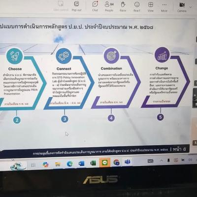 (3) กิจกรรมกระบวนการห้องปฏิบัติการนวัตกรรมเชิงนโยบาย (STO Policy Innovation Lab) เป็นกิจกรรมีผู้ข้าร่วมหลักสูตร ได้แก่ ป.ย.ป.1,ป.ย.ป.2, ป.ย.ป.3 และ ป.ย.ป.4 ร่วมพัฒนา ต้นแบบนวัตกรรมเชิงนโยบายผ่านการอบรมเชิงปฏิบัติการโดยใช้เครื่องมือต่าง ๆ ในการพัฒนา