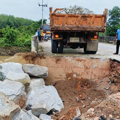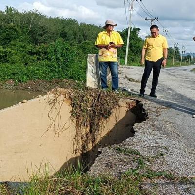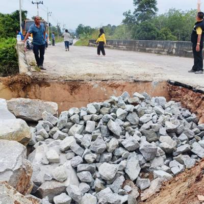 สำนักช่าง อบจ.สงขลา นำเครื่องจักรกล และวัสดุฯ เข้าทำการซ่อมแซม ความเสียหายบริเวณคอสะพาน บ้านแคเหนือ - บ้านท่าล้อ และซ่อมจนแล้วเสร็จ