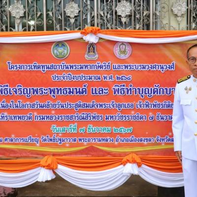 นายเชิดเกียรติ เมธีลักษณ์ ที่ปรึกษานายกองค์การบริหารส่วนจังหวัดสงขลา เข้าร่วมในพิธีเจริญพระพุทธมนต์ และพิธีตักบาตรพระสงฆ์ เฉลิมพระเกียรติ สมเด็จพระเจ้าลูกเธอ เจ้าฟ้าพัชรกิติยาภา นเรนทิราเทพยวดี กรมหลวงราชสาริณีสิริพัชร มหาวัชรราชธิดา เนื่องในโอกาสวันคล้ายวันประสูติ 7 ธันวาคม พร้อมด้วยบุคลากรองค์การบริหารส่วนจังหวัดสงขลา เข้าร่วมในพิธีฯ