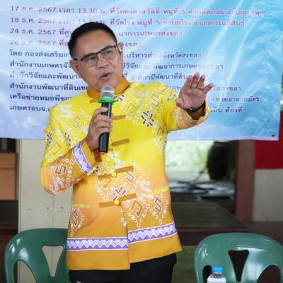 กิจกรรม “Kickoff แนะนำเกษตรกรในการดูแลพืชหลังน้ำท่วม” โดยกองส่งเสริมการเกษตร องค์การบริหารส่วนจังหวัดสงขลา กำหนดจัดขึ้น 4 ครั้ง ได้แก่ วันที่ 17 ธ.ค. 67 ณ ศาลาประชาคม วัดคงคาสวัสดิ์ ม.5 ต.สะกอม อ.เทพา , วันที่ 18 ธ.ค. 67 ณ วัดโรง ม.5 ต.โรง อ.กระแสสินธุ์ , วันที่ 24 ธ.ค. 67 ณ ศูนย์วิจัยและพัฒนาการเกษตรสงขลา และวันที่ 26 ธ.ค. 67 ณ สถานีพัฒนาที่ดินสงขลา โดยความร่วมมือของ กรมพัฒนาที่ดิน กรมวิชาการเกษตร กรมส่งเสริมการเกษตร สภาเกษตรกรแห่งชาติ และภาคีเครือข่ายภาคการเกษตร เพื่อให้ความรู้เรื่องการจัดการดิน พืช รวมถึงมาตรการให้ความช่วยเหลือจากเหตุภัยพิบัติน้ำท่วม และสาธิตการใช้ปัจจัยการผลิตต่าง ๆ พร้อมกับมอบตัวอย่างวัสดุและสารชีวภัณฑ์ เพื่อดูแลพืชฟื้นฟูที่ประสบน้ำท่วม