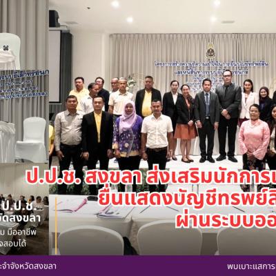 ป.ป.ช. สงขลา ส่งเสริมนักการเมืองท้องถิ่นยื่นแสดงบัญชีทรัพย์สินและหนี้สินผ่านระบบออนไลน์ โดยโครงการสร้างความรู้ความเข้าใจในการยื่นบัญชีทรัพย์สินและหนี้สินทางระบบอิเล็กทรอนิกส์ รุ่นที่ 2
