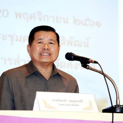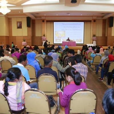 นายก อบจ.สงขลา กล่าวให้โอวาทแก่ อสม.ผู้เชี่ยวชาญจังหวัดสงขลา ในโครงการแลกเปลี่ยนเรียนรู้ ส่งเสริมพัฒนาศักยภาพ อสม.ผู้เชี่ยวชาญ จังหวัดสงขลา รุ่นที่ 1