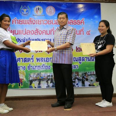 18 ก.พ.61 นายก อบจ.สงขลา เป็นประธานในพิธีปิดโครงการ ค่ายพลังเยาวชนสร้างสรรค์ สู่การเปลี่ยนแปลงสังคมที่ยั่งยืน รุ่นที่ 4 ประจำปีงบประมาณ 2561