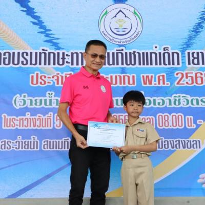 นายสุรสิทธิ์ ศรีอินทร์ ที่ปรึกษานายกองค์การบริหารส่วนจังหวัดสงขลา เป็นประธานในพิธีปิดพร้อมมอบใบประกาศเกียรติบัตรแก่ผู้เข้ารับการฝึกอบรมทักษะทางด้านกีฬาแก่เด็ก เยาวชน และประชาชน ประจำปีงบประมาณ พุทธศักราช 2568 (ว่ายน้ำขั้นพื้นฐาน เพื่อเอาชีวิตรอด)
