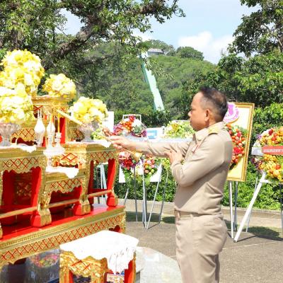 นายฉัตรเพชร ครุอำโพธิ์ รองนายกองค์การบริหารส่วนจังหวัดสงขลา ร่วมพิธีวางพวงมาลาถวายราชสักการะพระอนุสาวรีย์ สมเด็จพระเจ้าบรมวงศ์เธอ เจ้าฟ้ายุคลฑิฆัมพร กรมหลวงลพบุรีราเมศวร์ ประจำปี พ.ศ. 2568