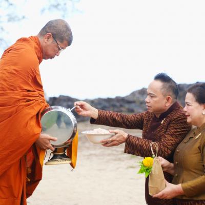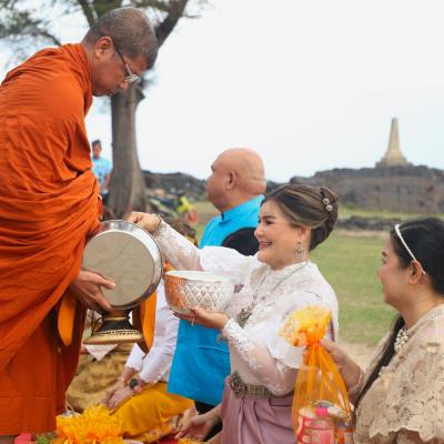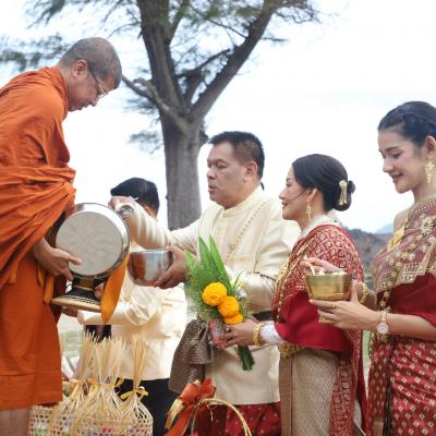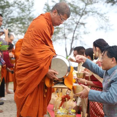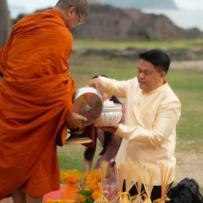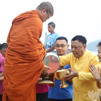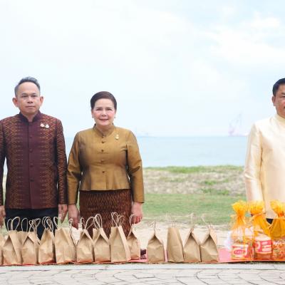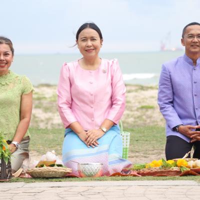 เสน่ห์สงขลา มหาสงกรานต์ 2568 นายก อบจ.สงขลา ร่วมกิจกรรม "สวมผ้าไทยใส่บาตร ปูสาดริมเล" สืบสานวัฒนธรรม เสริมสิริมงคล