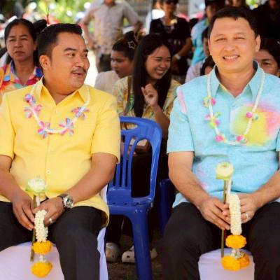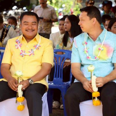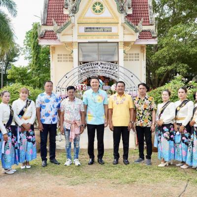เลขานุการนายกองค์การบริหารส่วนจังหวัดสงขลา / นายชัฏฌฉัตร นุสคง สมาชิกสภาองค์การบริหารส่วนจังหวัดสงขลา เขต 1 อำเภอสิงหนคร / นางมยุรี พานชัย ผู้อำนวยกองการศึกษา ศาสนาและวัฒนธรรม องค์การบริหารส่วนจังหวัดสงขลา / พระอธิการจำลอง เจ้าอาวาสวัดไทรทอง / บุคลากรกองการศึกษา ศาสนาและวัฒนธรรม องค์การบริหารส่วนจังหวัดสงขลา / หัวหน้าส่วนราชการ และพี่น้องประชาชนชาวตำบลทำนบ อำเภอสิงหนคร จังหวัดสงขลา ร่วมในพิธีเปิดโครงการฯ