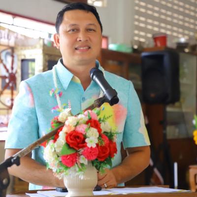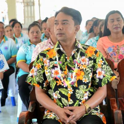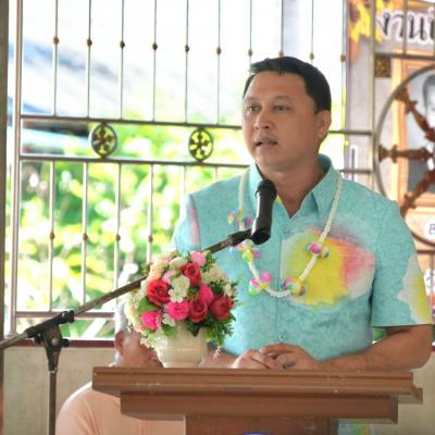 โดยมี นายสุชาติ พรมสวัสดิ์ นายกองค์การบริหารส่วนตำบลทำนบ // กล่าวรายงาน