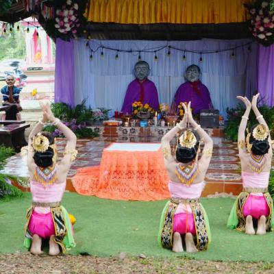 มีการรำบวงสรวงแสดงความกตัญญูแก่ตากาหลี และยายกาหลา ซึ่งเป็นผู้ดูเเลป่าช้าแห่งนี้ในอดีต การทำบุญตักบาตรแก่พระสงฆ์ 15 รูป มีการจัดจำหน่ายอาหารพื้นบ้านให้ผู้ร่วมงานได้อิ่มอร่อย โดยได้รับการสนับสนุนจากชาวบ้านและหน่วยงานต่างๆ ร่วมมือกัน