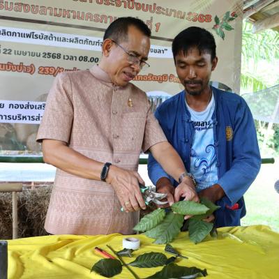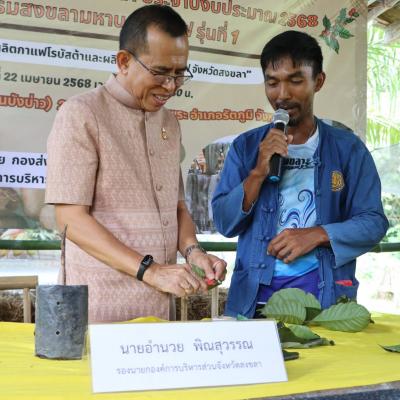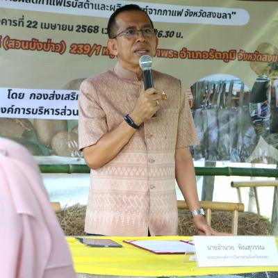 โครงการพัฒนาพืชเศรษฐกิจจังหวัดสงขลา ประจำปีงบประมาณ 2568 กิจกรรมที่ 2 กิจกรรมส่งเสริมสงขลามหานครกาแฟ รุ่นที่ 1 หลักสูตร "เทคโนโลยีการผลิตกาแฟโรบัสต้าและผลิตภัณฑ์จากกาแฟ จังหวัดสงขลา" เป็นโครงการที่จัดขึ้นเพื่อมอบโอกาสในการพัฒนาพืชเศรษฐกิจ (กาแฟ) ให้กับพี่น้องชาวเกษตรกรผู้สนใจปลูกกาแฟและผลิตภัณฑ์จากกาแฟ อันเป็นการสร้างโอกาสที่จะเพิ่มรายได้และเพิ่มช่องทางการผลิตสินค้าเกษตรมูลค่าสูง
