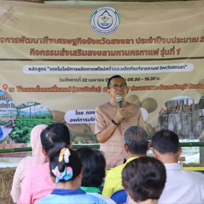 อบจ.สงขลา จัดฝึกอบรม หลักสูตร "เทคโนโลยีการผลิตกาแฟโรบัสต้า และผลิตภัณฑ์จากกาแฟ จังหวัดสงขลา" หวังส่งเสริมต่อยอดพืชกาแฟของจังหวัดสงขลา ให้เป็นสินค้าอัตลักษณ์และเป็นที่รู้จักอย่างกว้างขวาง
