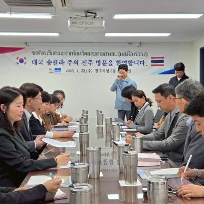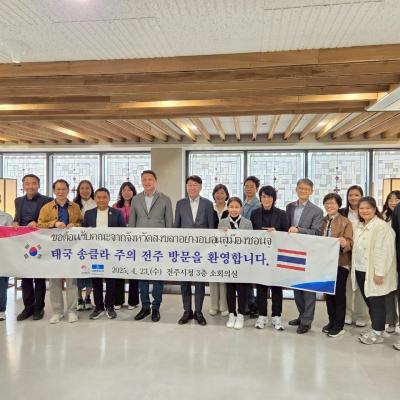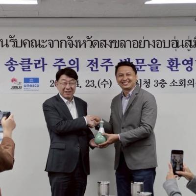 วันพุธที่ 23 เมษายน 2568 ตั้งแต่เวลา 10.00 - 16.30 น. ณ เมืองชอนจู สาธารณรัฐเกาหลี (เกาหลีใต้) นายสุพิศ พิทักษ์ธรรม นายกองค์การบริหารส่วนจังหวัดสงขลา ได้มอบหมายให้นายฉัตรเพชร ครุอำโพธิ์ รองนายกองค์การบริหารส่วนจังหวัดสงขลา นางสาวภพภร ทองคณารักษ์ ผู้อำนวยการกองผังเมือง นางสาวสราญตา สุพัฒนกุล ผู้อำนวยการกองการท่องเที่ยวและกีฬา พร้อมด้วยนายเสถียรพงษ์ แก้วเพชร ผู้อำนวยการกลุ่มงานยุทธศาสตร์และข้อมูลเพื่อการพัฒนาจังหวัด สำนักงานจังหวัดสงขลา นายประสิทธิ์ กุลเทพรหม นักวิเคราะห์นโยบายและแผนชำนาญการ สำนักงานการท่องเที่ยวและกีฬาจังหวัดสงขลา ดร.จเร สุวรรณชาต ผู้แทนจากคณะสถาปัตยกรรมศาสตร์ มหาวิทยาลัยเทคโนโลยีราชมงคลศรีวิชัย และมหาวิทยาลัยเชียงใหม่ ในฐานะที่ปรึกษาโครงการจ้างที่ปรึกษาจัดกิจกรรมขับเคลื่อนการพัฒนาเมืองตามแนวทางการเป็นเมืองสร้างสรรค์ของยูเนสโก (ด้านอาหาร) เข้าร่วมศึกษาเรียนรู้พื้นที่หมู่บ้านโบราณ Hannok Village ย่านเมืองเก่าสร้างสรรค์ของเมืองชอนจู และเข้าพบนายวู บอม กิ นายกเทศมนตรีเมืองชอนจู เพื่อแลกเปลี่ยนเรียนรู้การเป็นเครือข่ายเมืองสร้างสรรค์ขององค์การ UNESCO ด้านอาหาร รวมถึงแลกเปลี่ยนประเด็นของการเป็นเครือข่ายเมืองสร้างสรรค์และการสร้างความร่วมมือระหว่างเมือง