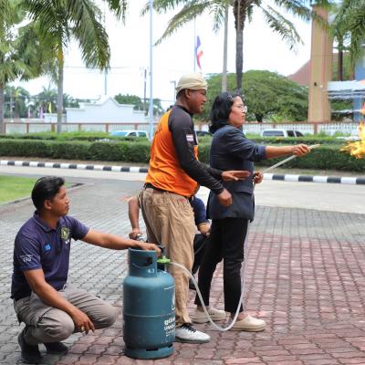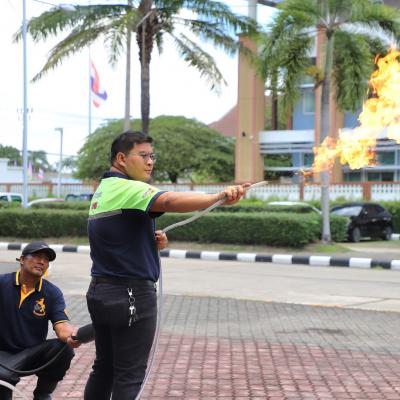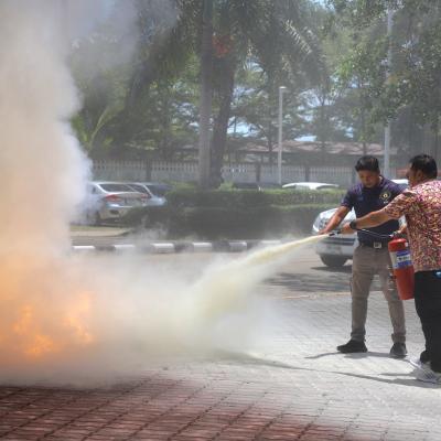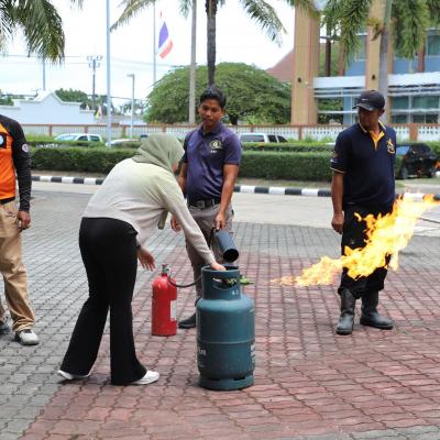 โดยได้รับการสนับสนุนวิทยากร นำโดย นายเกรียงไกร ไชยมิตร หัวหน้างานป้องกันและบรรเทาสาธารณภัย อบจ.สงขลา และทีมงาน มาให้ความรู้ และฝึกสอนการดับเพลิงให้แก่ผู้เข้าร่วมอบรม และวิธีการเอาตัวรอดจากเหตุเพลิงไหม้อาคาร