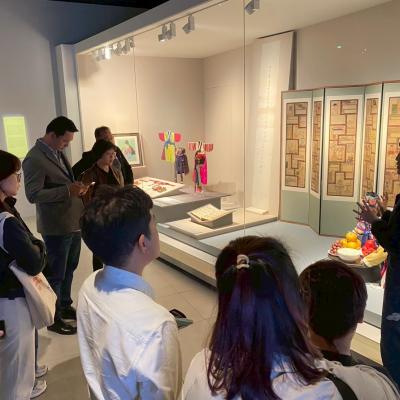และในเวลา 13.00 น. คณะทำงาน ฯ ได้เข้าชมพิพิธภัณฑ์พื้นบ้านแห่งชาติเกาหลี (National Folk Museum of Korea) ซึ่งเป็นสถานที่จัดแสดงนิทรรศการเกี่ยวกับศิลปวัฒนธรรมพื้นบ้านเกาหลีและสิ่งประดิษฐ์ทางประวัติศาสตร์ที่ใช้ในชีวิตประจำวัน รวมถึงความรู้ทางการเกษตร ตลอดจนความเชื่อทางวัฒนธรรมของชาวเกาหลีในอดีต และเข้าพบ ดร. ซางฮุน จาง ผู้อำนวยการพิพิธภัณฑ์ฯ เพื่อแลกเปลี่ยนองค์ความรู้ด้านวัฒนธรรม อาหาร และแนวทางการอนุรักษ์มรดกทางวัฒนธรรมผ่านการจัดแสดง ในการนำเสนออัตลักษณ์ของท้องถิ่นในรูปแบบที่สร้างสรรค์และทันสมัย