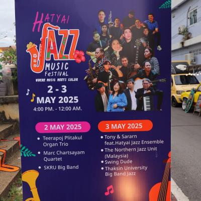 งาน Hatyai Jazz Music Festival Music x Colors (where Music Meets Colors) กำหนดจัดขึ้นระหว่างวันที่ 2-3 พฤษภาคม 2568 ณ ลานกีฬาเพื่อสุขภาพถนนซีกิมหยง ระหว่างถนนธรรมนูญวิถีและถนนชีอุทิศ (คันคลองบริเวณโรงเรียนแสงทองวิทยา) เพื่อส่งเสริมภาพลักษณ์ของหาดใหญ่ในฐานะเมืองแห่งวัฒนธรรม ดนตรี และสีสันแห่งการท่องเที่ยว การจัดงานในครั้งนี้เป็นครั้งที่ 2 ต่อเนื่องจากความสำเร็จของปีที่ผ่านมา ซึ่งมีผู้เข้าร่วมงานกว่า 12,000 คน และสร้างมูลค่าทางเศรษฐกิจสูงถึง 36 ล้านบาท จากการท่องเที่ยวและบริการต่าง ๆ