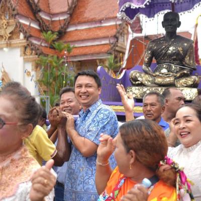 นายฉัตรเพชร ครุอำโพธิ์ รองนายกองค์การบริหารส่วนจังหวัดสงขลา / นายพรชัย พานิชกรณ์ รองประธานสภาองค์การบริหารส่วนจังหวัดสงขลา / นายชัฏฌฉัตร นุสคง สมาชิกสภาองค์การบริหารส่วนจังหวัดสงขลา อำเภอสิงหนคร เขต 1 / นางมยุรี พานชัย ผู้อำนวยกองการศึกษา ศาสนา และวัฒนธรรมองค์การบริหารส่วนจังหวัดสงขลา / หัวหน้าส่วนราชการ / บุคลากรกองการศึกษา ศาสนาและวัฒนธรรม องค์การบริหารส่วนจังหวัดสงขลา และพุทธศาสนิกชนเข้าร่วมในพิธีเปิด พร้อมร่วมพิธีขอขมา และสรงน้ำรูปเหมือนพ่อท่านทั้ง 3 องค์ ได้แก่ พ่อท่านคง โกกนุตโต พ่อท่านเห้ง ธรรมรโต และพ่อท่านฝาง สิริปัญโญ