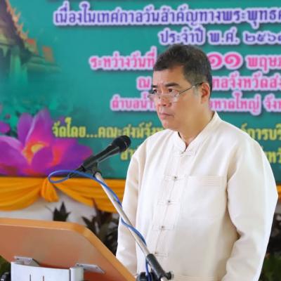 วันที่ 10 พฤษภาคม 2568 เวลา 13.00 น. นางสุรียพรรณ์ ณ สงขลา ผู้เชี่ยวชาญพิเศษด้านการวางแผนยุทธศาสตร์และแผนพัฒนาท้องถิ่น กล่าวสนับสนุนการจัดงานส่งเสริมพระพุทธศาสนา เนื่องในวันวิสาขบูชา กิจกรรมส่งเสริมการเผยแพร่พระพุทธศาสนา เนื่องในเทศกาลวันสำคัญทางพุทธศาสนา (วันวิสาขบูชา) ประจำปี 2568 ณ พุทธมณฑลจังหวัดสงขลา ต.น้ำน้อย อ.หาดใหญ่ จ.สงขลา