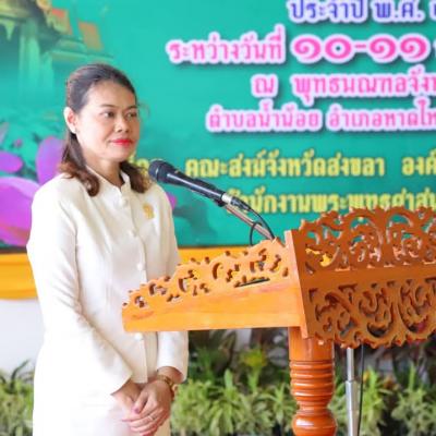 นางสาวสุภาพร เกตุสุริยงต์ ผู้อำนวยการสำนักงานพระพุทธศาสนาจังหวัดสงขลา กล่าวรายงาน