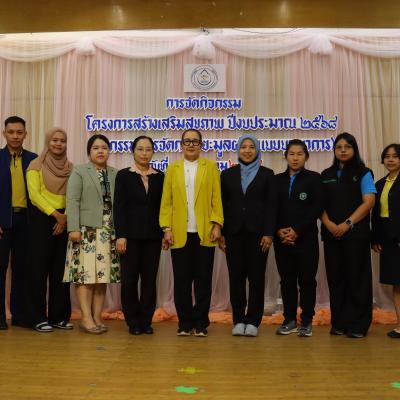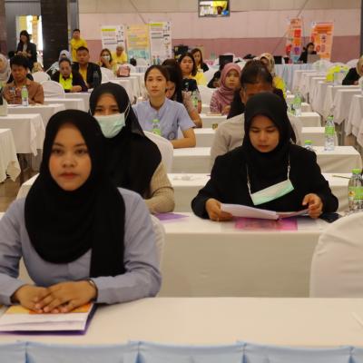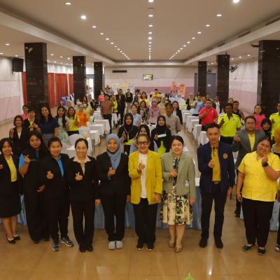 พร้อมด้วยเจ้าหน้าที่กองสาธารณสุข อบจ.สงขลา ผู้เข้าร่วมอบรม ซึ่งเป็นบุคลากรจาก รพ.สต. ในสังกัด อบจ.สงขลา และผู้นำเครือข่ายสุขภาพ (อสม.) จำนวน 90 คน