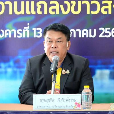 วันนี้ (13 พฤษภาคม 2568) ที่ ชั้น 3 สนามกีฬาติณสูลานนท์ จังหวัดสงขลา นายสุพิศ พิทักษ์ธรรม นายกองค์การบริหารส่วนจังหวัดสงขลา เป็นประธานงานแถลงข่าว โครงการ แข่งขันกีฬาฟุตบอล “อบจ.สงขลาคัพ” ประจำปีงบประมาณ พ.ศ.2568 พร้อมด้วย คณะผู้บริหาร สมาชิกสภา อบจ.สงขลา หัวหน้าส่วนราชการ สื่อมวลชนและแขกผู้มีเกียรติ โดยมี นายโชตินรินทร์ เกิดสม ผู้ว่าราชการจังหวัดสงขลา กล่าวถึงนโยบายสนับสนุนการกีฬาและการส่งเสริมจังหวัดสงขลาสู่การเป็นเมืองกีฬา (Songkhla Sports City)