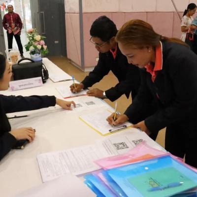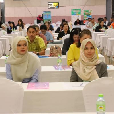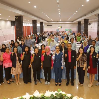 พร้อมด้วยเจ้าหน้าที่กองสาธารณสุข อบจ.สงขลา ผู้เข้าร่วมอบรม ซึ่งเป็นบุคลากรจาก รพ.สต. ในสังกัด อบจ.สงขลา และผู้นำเครือข่ายสุขภาพ (อสม.) จำนวน 110 คน