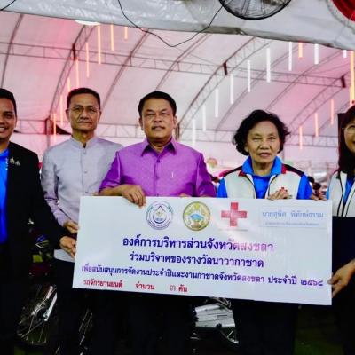 โอกาสนี้ อบจ.สงขลา ได้ร่วมออกบูธจัดนิทรรศการ และร่วมสนับสนุนรถจักรยานยนต์ จำนวน 3 คัน เพื่อนำไปใช้ในการออกรางวัลสลากกาชาด ในงานประจำปีและงานกาชาดจังหวัดสงขลาประจำปี 2568