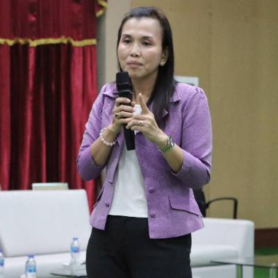 นางสาวอุทัยวรรณ เทพไชย ผู้อำนวยการกองสวัสดิการสังคม เทศบาลตำบลปริก // กล่าวต้อนรับ