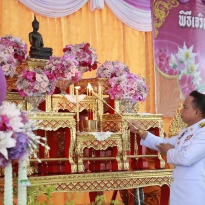 โดยมี นายโชตินรินทร์ เกิดสม ผู้ว่าราชการจังหวัดสงขลา เป็นประธานในพิธีฯ พร้อมด้วย นายกเหล่ากาชาด รองผู้ว่าราชการจังหวัดสงขลา หัวหน้าส่วนราชการ ข้าราชการ ศาล ทหาร ตำรวจ และพุทธศาสนิกชนในจังหวัดสงขลา เข้าร่วมในพิธี