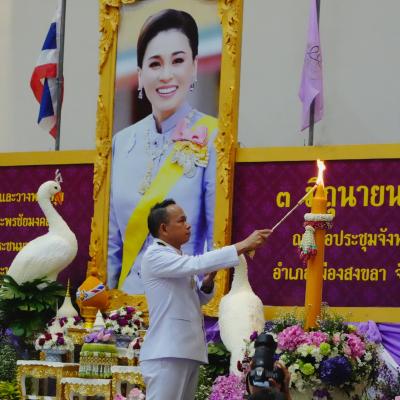 นายอำนวย พิณสุวรรณ รองนายกองค์การบริหารส่วนจังหวัดสงขลา ร่วมพิธีถวายเครื่องราชสักการะ วางพานพุ่ม และพิธีจุดเทียนถวายพระพรชัยมงคล เนื่องในโอกาสวันเฉลิมพระชนมพรรษา สมเด็จพระนางเจ้าฯ พระบรมราชินี