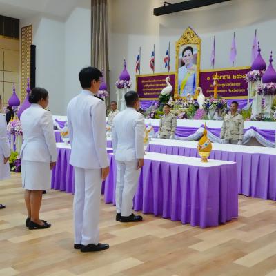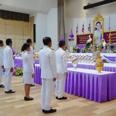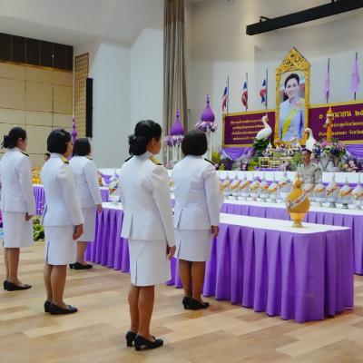 พิธีถวายเครื่องราชสักการะ วางพานพุ่มและพิธีจุดเทียนถวายพระพรชัยมงคล เนื่องในโอกาสวันเฉลิมพระชนมพรรษา สมเด็จพระนางเจ้าฯ พระบรมราชินีในครั้งนี้ เป็นการเทิดพระเกียรติ ถวายความจงรักภักดี ด้วยการรวมพลังสามัคคีเป็นหมู่คณะ ประกอบพิธีวางพานพุ่ม เพื่อถวายเป็นราชสักการะเบื้องหน้าพระฉายาลักษณ์ สมเด็จพระนางเจ้าฯ พระบรมราชินี