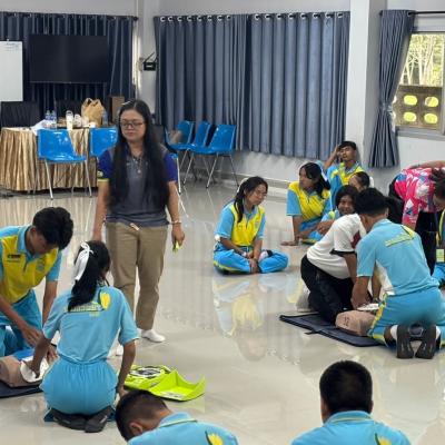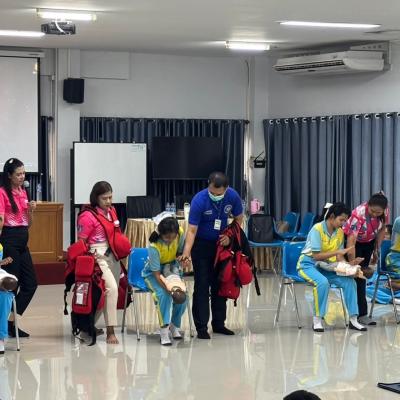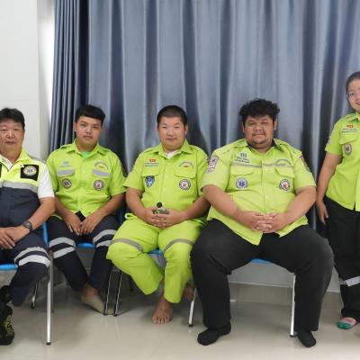 นางสาวนาถลดา จิตสุวรรณ พยาบาลวิชาชีพชำนาญการพิเศษ หัวหน้ากลุ่มงานบริการการแพทย์ฉุกเฉิน กองสาธารณสุของค์การบริหารส่วนจังหวัดสงขลา พร้อมด้วย บุคลากรกองสาธารณสุของค์การบริหารส่วนจังหวัดสงขลาที่เกี่ยวข้องร่วมกิจกรรมอบรมอาสาสมัครฉุกเฉินชุมชน รุ่นที่ 3