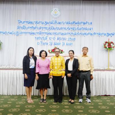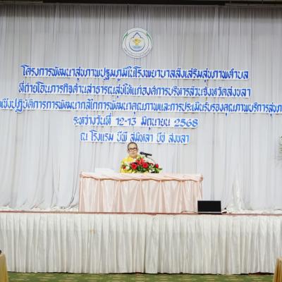 นางสาวปรินดา ปาลาเร่ รองนายกองค์การบริหารส่วนจังหวัดสงขลา เป็นประธานในพิธีเปิด กิจกรรมอบรมเชิงปฏิบัติการการพัฒนากลไกการพัฒนาคุณภาพและการประเมินรับรองคุณภาพบริการสุขภาพปฐมภูมิ ภายใต้โครงการพัฒนาสุขภาพปฐมภูมิในโรงพยาบาลส่งเสริมสุขภาพตำบลที่ถ่ายโอนภารกิจด้านสาธารณสุขให้แก่องค์การบริหารส่วนจังหวัดสงขลา