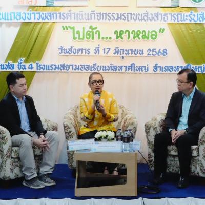 วันนี้ (17 มิ.ย. 68) นางสาวปรินดา ปาลาเร่ รองนายกองค์การบริหารส่วนจังหวัดสงขลา เป็นประธานการแถลงข่าวผลการดำเนินกิจกรรมรถขนส่งสาธารณะรับ-ส่งผู้ป่วยจังหวัดสงขลา “ไปต้า… หาหมอ” ภายใต้โครงการพัฒนารูปแบบระบบบริการรถขนส่งสาธารณะรับ-ส่งผู้ป่วยขององค์การบริหารส่วนจังหวัดสงขลา ร่วมกับ ผู้ช่วยศาสตราจารย์ ดร.ศดานนท์ วัตตธรรม หัวหน้าโครงการวิจัย และผู้ช่วยศาสตราจารย์ ดร.กันตภณ มะหาหมัด รักษาราชการแทนอธิการบดี มหาวิทยาลัยราชภัฏสงขลา โดยมีหน่วยงาน อปท. เครือข่ายเข้าร่วม ณ ห้องออเรียนทัล ชั้น 4 โรงแรมสยามออเรียนทัลหาดใหญ่ อำเภอหาดใหญ่ จังหวัดสงขลา โอกาสนี้ นางสาวปรินดา ปาลาเร่ รองนายกองค์การบริหารส่วนจังหวัดสงขลา ร่วมเสวนาภายหลังการแถลงข่าวอีกด้วย