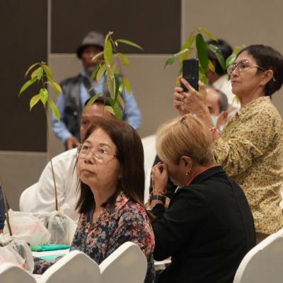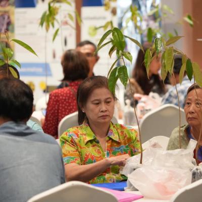 ภายในงานพบกับกิจกกรมการบรรยายให้ความรู้ เรื่อง การอนุรักษ์ การคัดเลือกสายพันธ์ุและการจัดการทุเรียนพื้นบ้านภาคใต้ โดย รองศาสตราจารย์ ดร.จรัสศรี นวลศรี หัวหน้าศูนย์วิจัยพืชยืนต้นและไม้ผลเมืองร้อน และ ดร.เจษฎา โสภารัตน์ คณะทรัพยากรธรรมชาติ มหาวิทยาลัยสงขลานครินทร์ , เรื่อง การรวมกลุ่มและการสร้างเครือข่ายอย่างยั่งยืน โดย นายธัชธาวินท์ สะรุโณ อดีตผู้เชี่ยวชาญด้านการผลิตพืชที่เหมาะสมกับสภาพพื้นที่ (ภาคใต้ตอนล่าง) กรมวิชาการเกษตร และกิจกรรมแบ่งกลุ่มฝึกปฏิบัติ เรื่องการขยายพันธุ์ทุเรียน (การเสียบยอด) และการป้องกันกำจัดโรคและแมลงศัตรูพืชทุเรียนบ้านแบบผสมผสาน (IPM) โดยนักวิชาการด้านการเกษตร จากส่วนราชการด้านการเกษตรในจังหวัดสงขลา