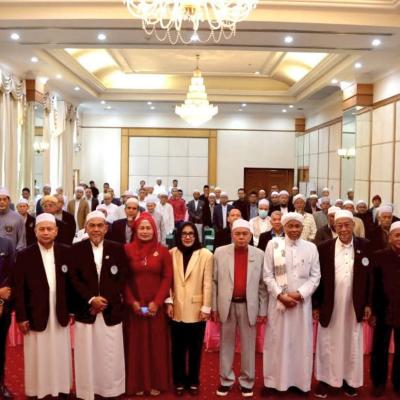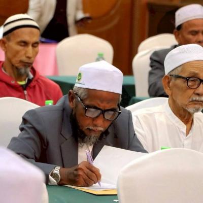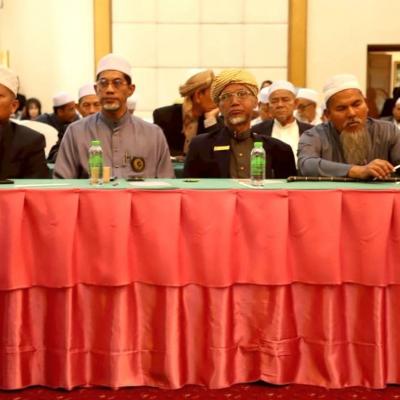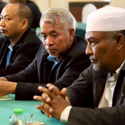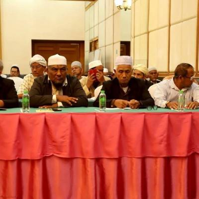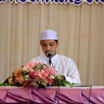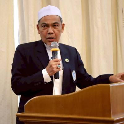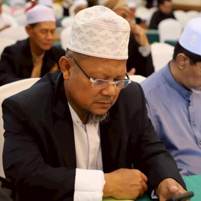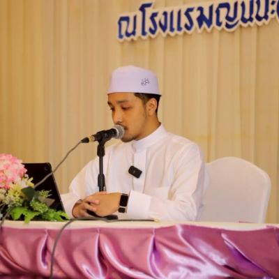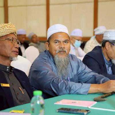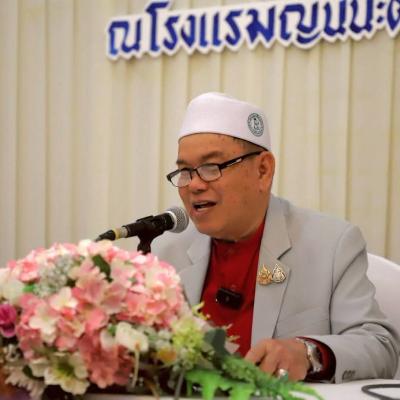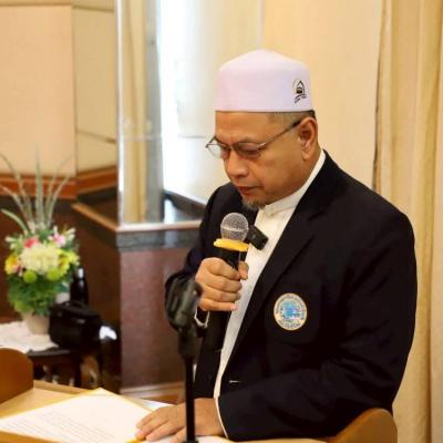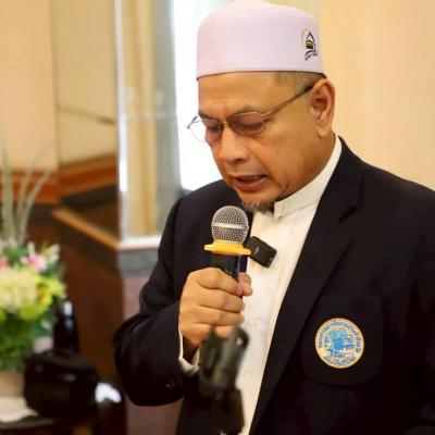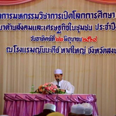 นายศักดิ์กรียา บิลแสละ ประธานกรรมการอิสลามประจำจังหวัดสงขลา ประธานสมาพันธ์คณะกรรมการอิสลามประจำจังหวัด 15 จังหวัดภาคใต้ // กล่าวให้โอวาท