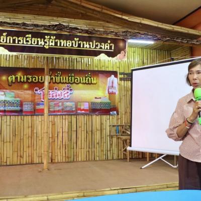 โดยมี นายครรชิต ภู่ทอง รองนายกเทศมนตรีตำบลลี้ กล่าวต้อนรับ พร้อมด้วย คุณแม่สุนีย์ ทองสัมฤทธิ์ ประธานศูนย์การเรียนรู้ศูนย์ผ้าจกโหล่งลี้บ้านปวงคำ และเจ้าหน้าที่ศูนย์การเรียนรู้ฯ เป็นวิทยากรบรรยายให้ความรู้ในเรื่องของกระบวนการผลิตผ้าทอ การพัฒนาผลิตภัณฑ์ผ้าทอ และช่องทางการจัดจำหน่าย